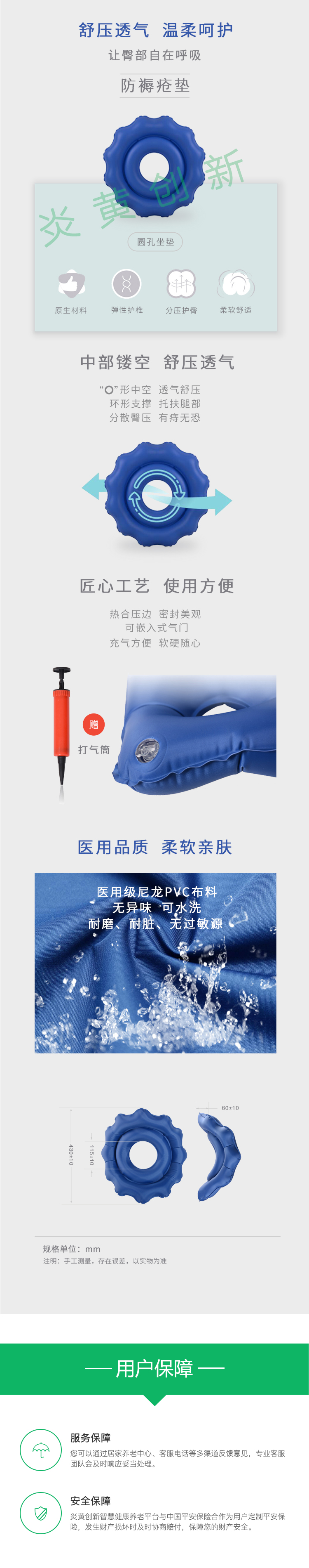 尺寸:外径430,内径115,厚度60 医用级尼龙pvc布料 最大承载重量100公斤