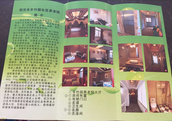 武汉市硚口区丰竹园社区养老院是一家集生活护理与医疗护理、养老、托养为一体的综合护理养老机构。护养中心地址在武汉市硚口区发展大道常码头。建筑面积8000余平方米,六层楼,共200余间房,床位300余张。房间配有整体卫浴、冷暖中央空调、新风系统、电视、电话、紧急呼叫器、冰箱、床柜椅等设施一应俱全。24小时热水服务,宾馆式居住环境,是一座高档次、高品质、高标准的养老服务机构。中心专收老年慢性病、生活不能自理、心脑血管疾病后遗症、长期卧床的老人入住。 我中心以“体贴入微、关怀备至,做老年人的孝顺儿女”为服务宗旨,坚持“以养带医、医养结合”的养老特色,遵循“关爱老人、从心做起”的服务理念,聘请了专业的护理人员,集中了优秀的医护专家,将专业护理规程寓于老年日常生活照料之中,实现服务的标准化、规范化、程序化,为入院老人提供星级的养老服务。
