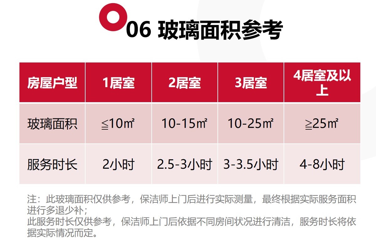 日常保洁服务内容: 1.日常保洁工作时间2小时起; 2.使用清洁设备、工具和药剂,对居室内地面、墙面、阳台、厨房、卫生间等部位进行清扫保洁:对门窗、玻璃、灶具、洁具、家具等进行针对性的处理,保证环境清洁、杀菌防腐、物品保养。 *不含深度清洁,开荒保洁